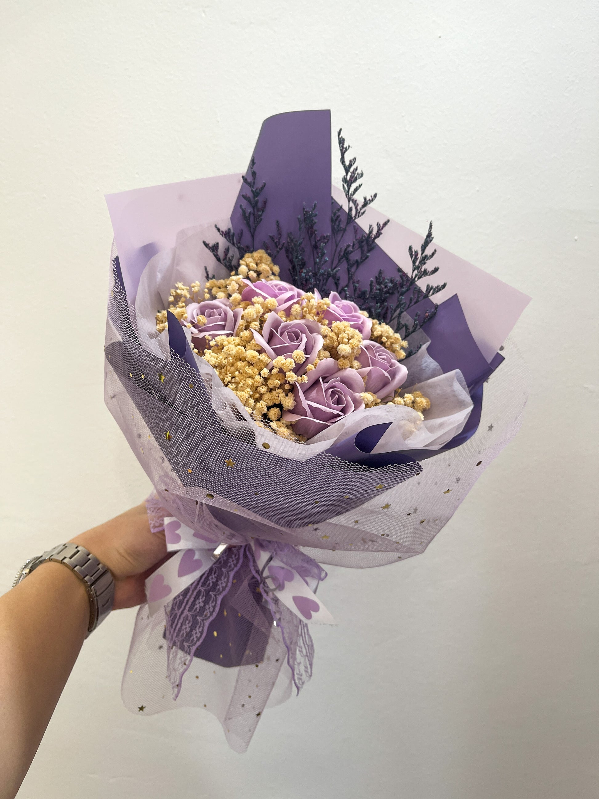 The Captain Hook arrangement features 12 meticulously selected stalks of mixed hydrangea and dried foliage. This combination not only provides visual appeal but also ensures longevity, as dried elements can last indefinitely with proper care. Ideal for enhancing indoor spaces with a touch of natural elegance.