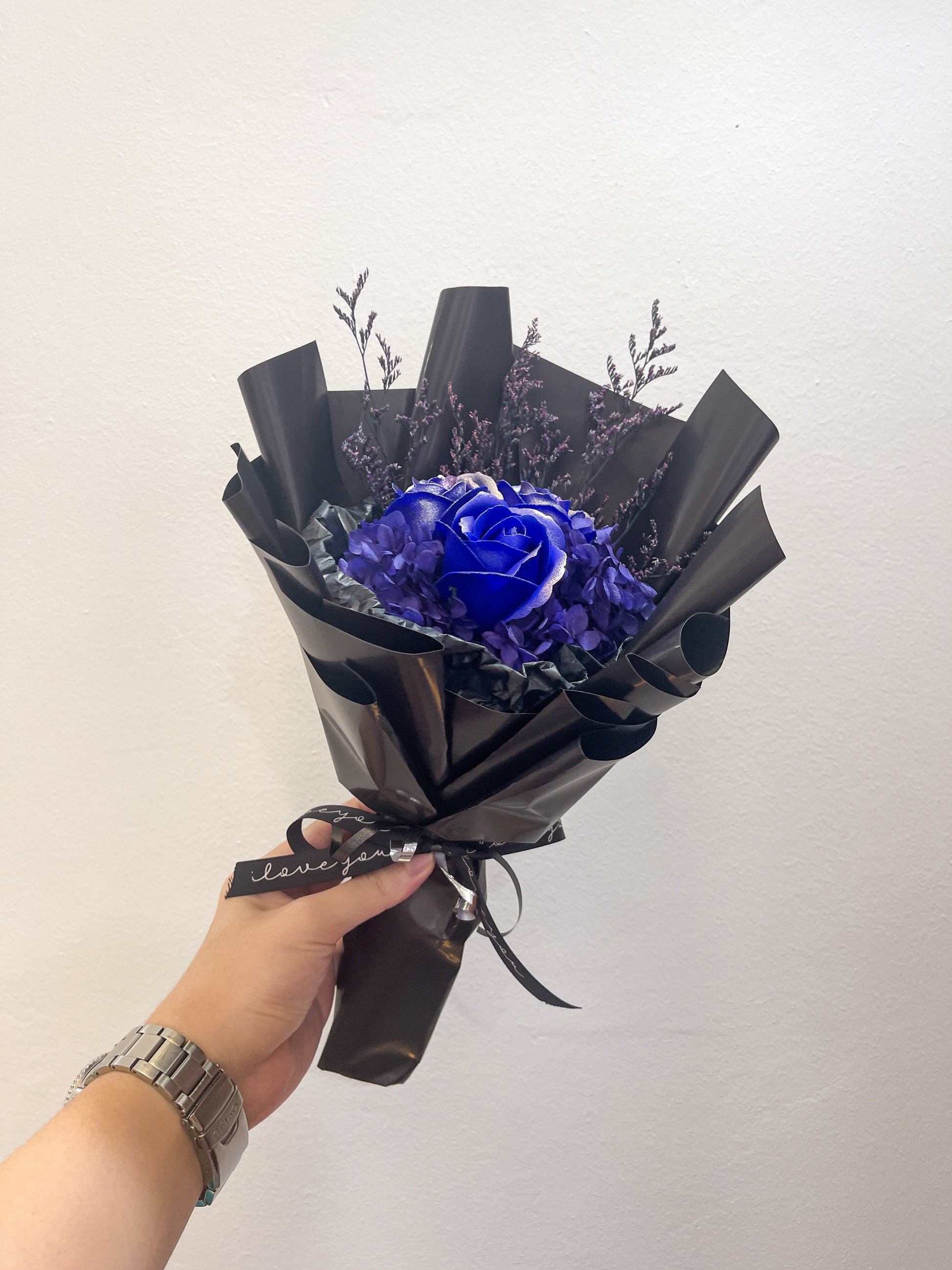 Mini Dark Purpur features 3 meticulously arranged stalks combined with hydrangea and dried foliage. This blend offers a visually appealing option for decor, with hydrangeas known for their longevity and aesthetic versatility, enhancing both residential and commercial spaces with subtle elegance.